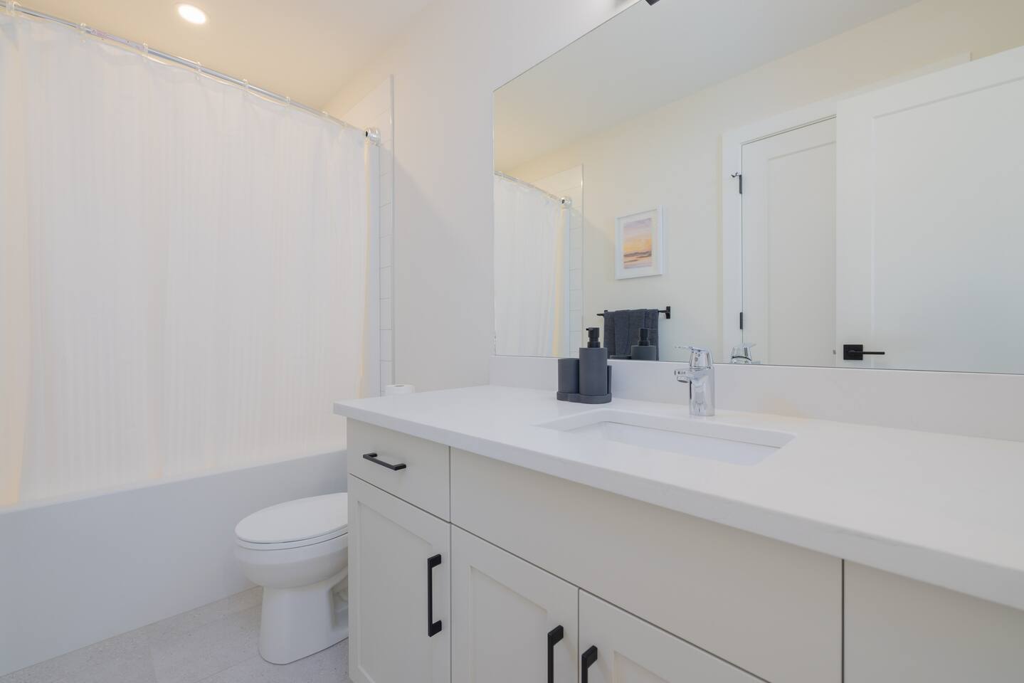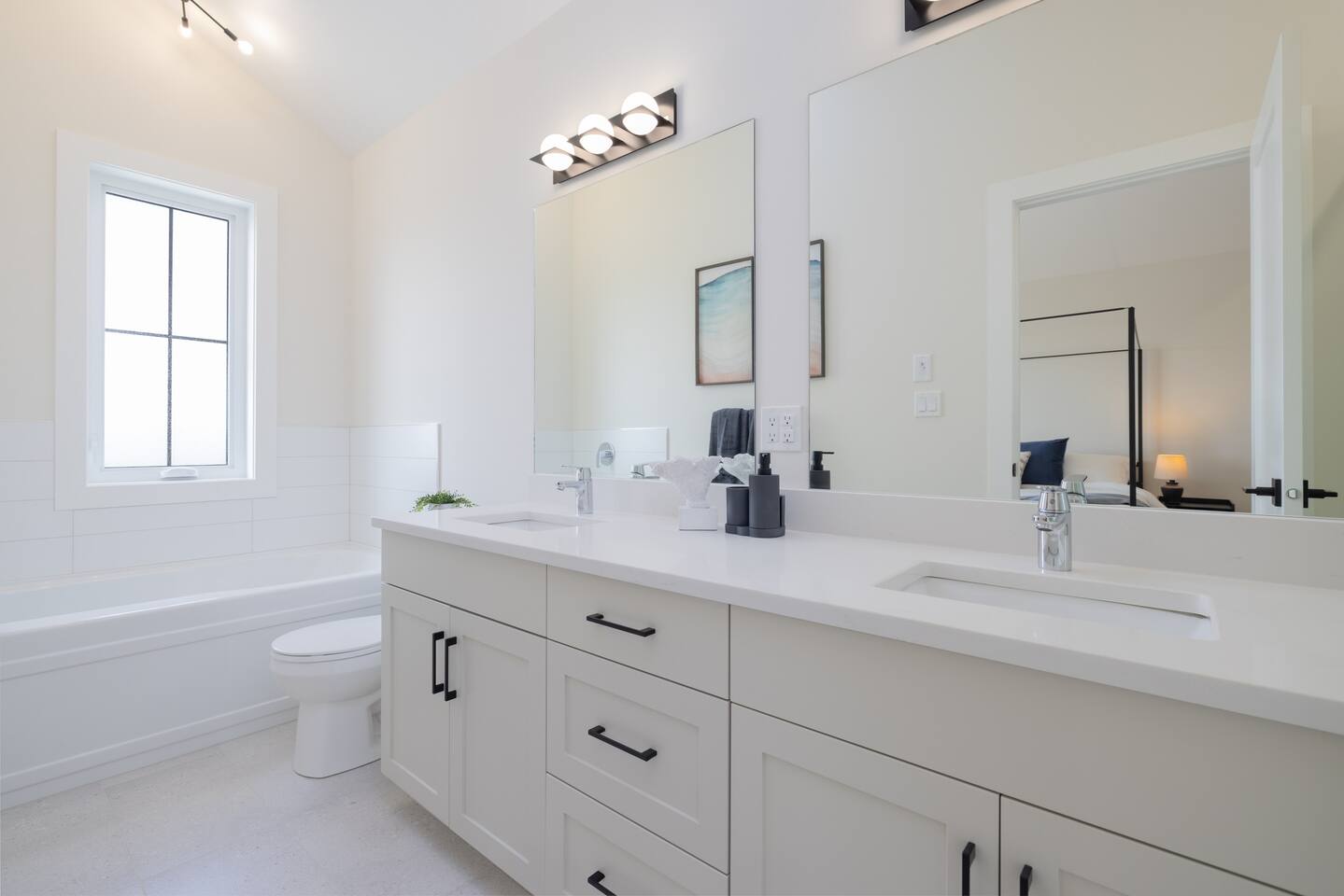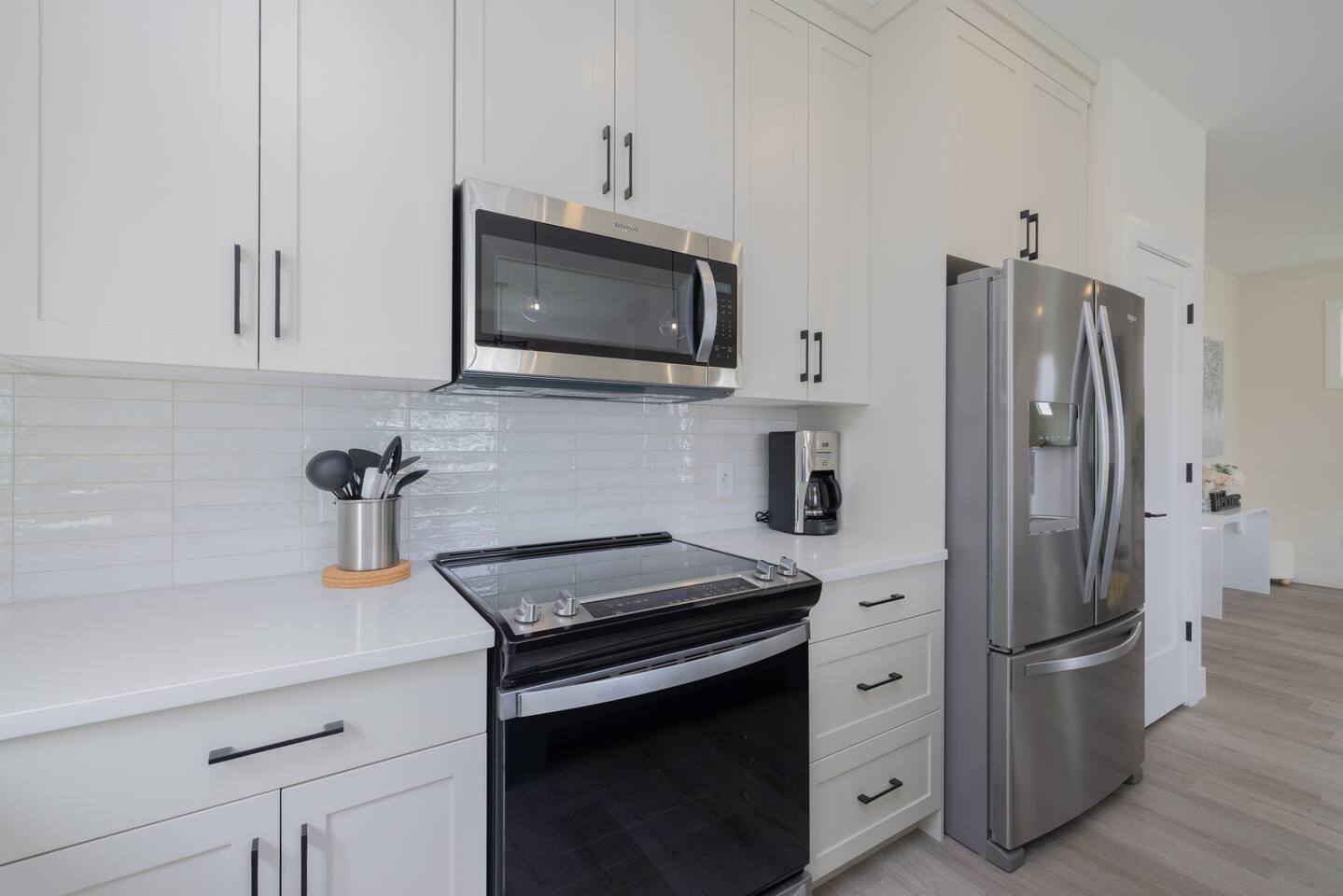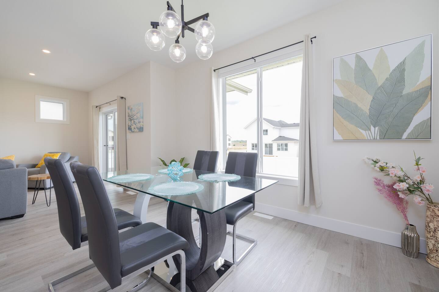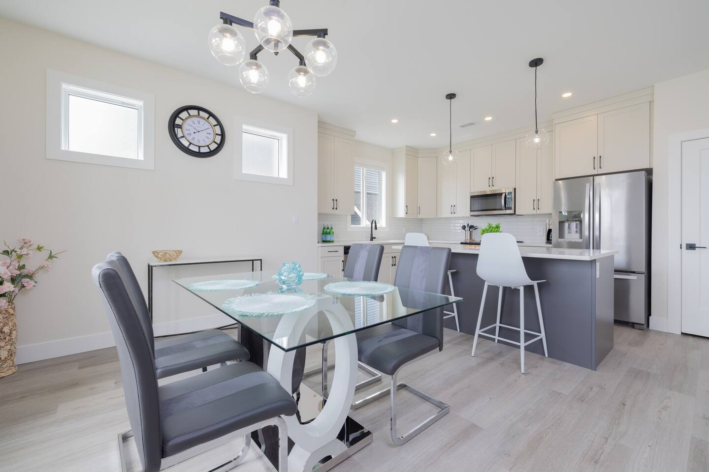 Spacious Living Areas: The open-concept main floor features a designer kitchen with top-tier finishes, large windows that bathe the space in natural light, and a striking gas fireplace for cozy evenings. The home is equipped with two televisions for your entertainment. Outdoor Delight: Enjoy the beautifully landscaped and fully fenced front and back yards, a covered deck with a Weber propane BBQ, and maintenance-free artificial turf. Convenience & Comfort: The home includes a double attached insulated garage, a concrete driveway and walkway, central air conditioning, electric blinds throughout, and a complete set of appliances. Prime Location: Situated near scenic trails, green spaces, and only 12 minutes from downtown, Miray provides easy access to Aspen Square, newly constructed amenities, and future schools. This home offers the perfect blend of tranquility and convenience, making it an excellent choice for your next getaway. **Accommodation** Bedrooms & Bathrooms: Relax in one of the 3 spacious bedrooms, with the option to transform the upstairs bonus room into a 4th bedroom. There are 3 modern bathrooms, including a luxurious five-piece ensuite in the master bedroom. Principle Suite: The main bedroom offers an oversized walk-in closet and a spa-like bathroom featuring a luxurious soaker tub, separate tiled shower, and dual sinks with quartz countertops and soft-close cabinetry.
