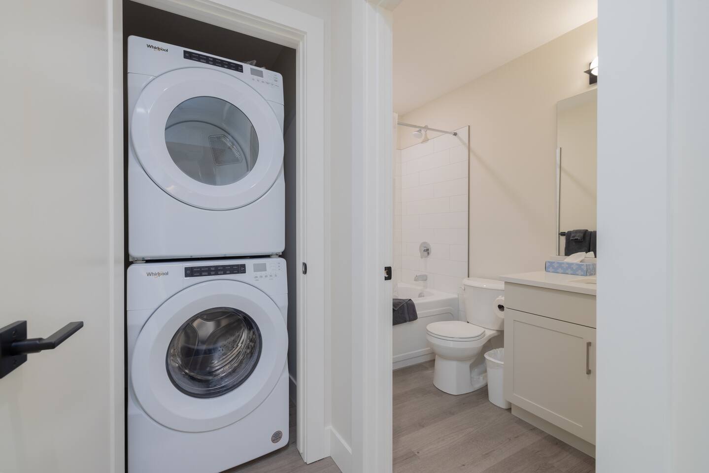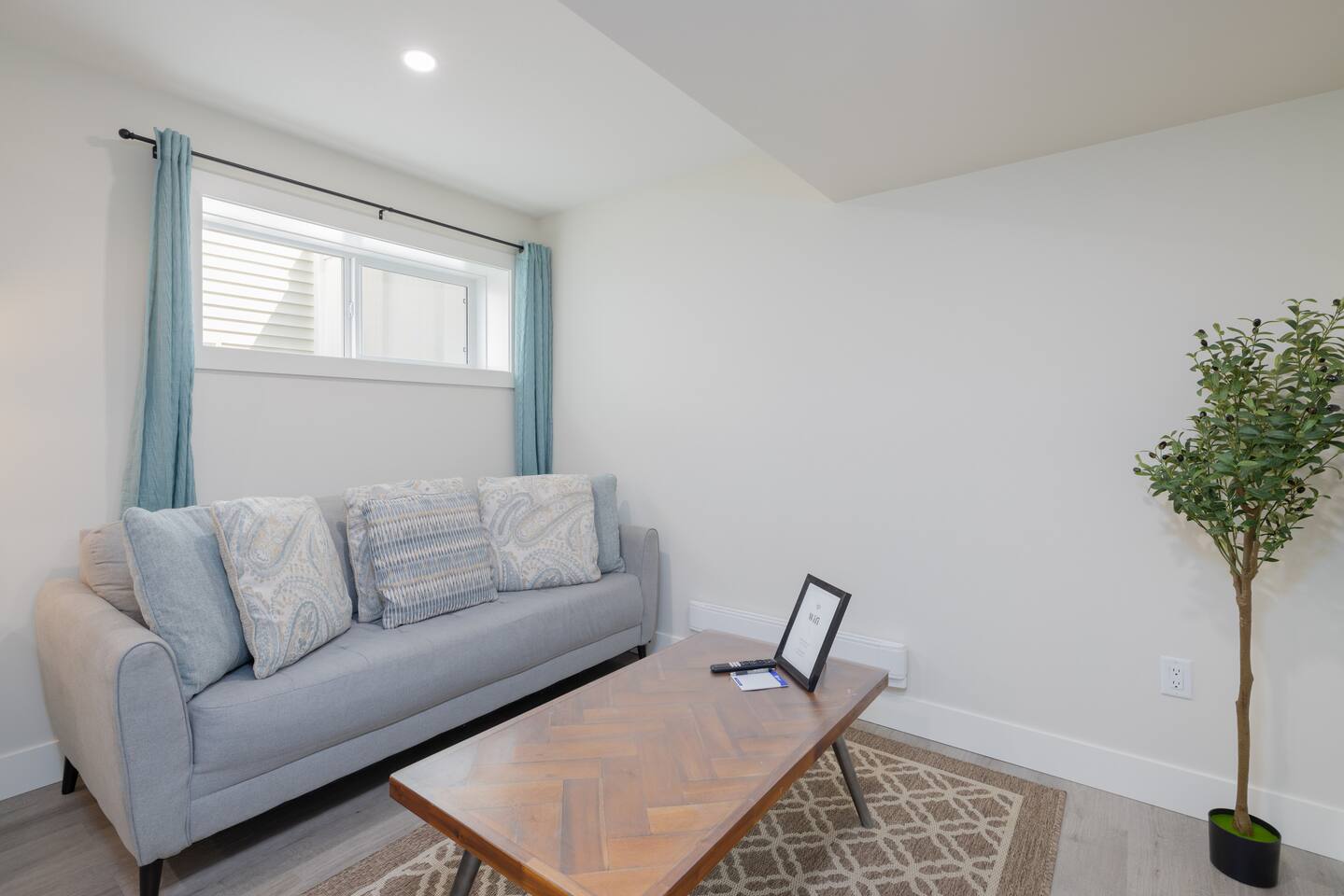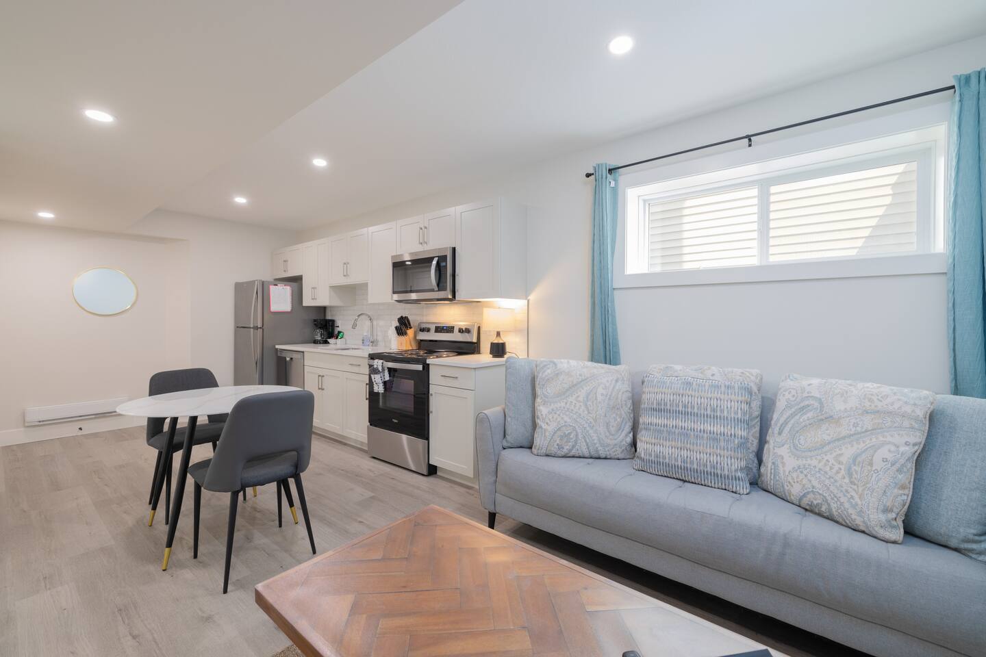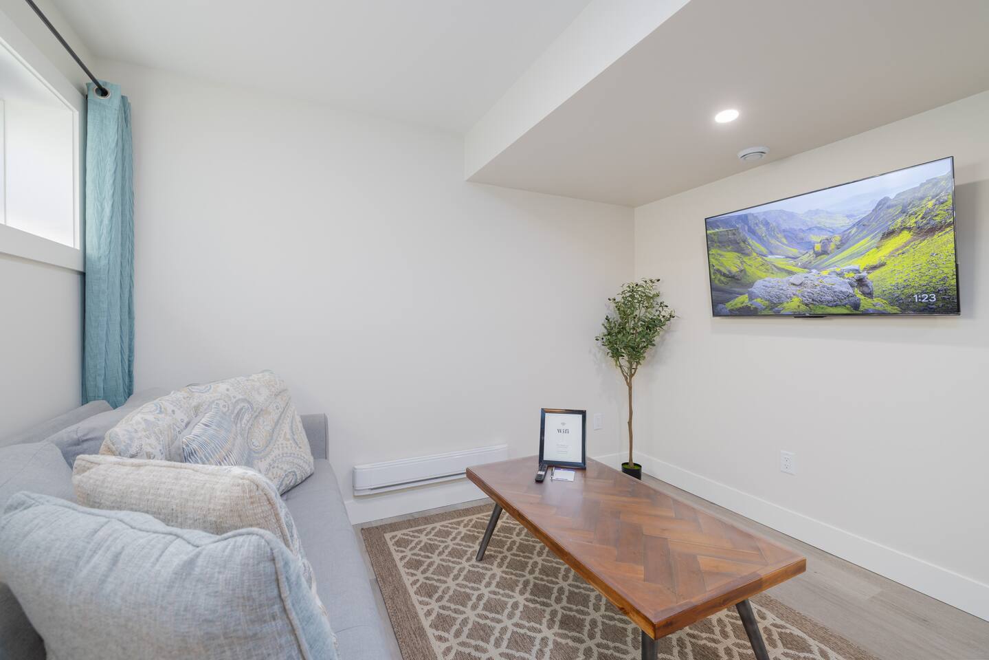 **Guest Access** Enjoy privacy and convenience with a private entrance into your suite. Driveway parking offers easy and secure vehicle storage. **Other things to note** The bedroom features a comfortable queen-sized bed with an Endy mattress, ensuring restful nights and rejuvenating sleep. The fully equipped kitchen boasts soft-close cabinetry, making meal preparation a breeze in this stylish and functional space. Relax in the living area with a 50-inch smart TV, perfect for streaming your favorite shows and movies. This pet-friendly suite also includes an in-suite washer and dryer, adding to the convenience of everyday living. Large windows provide plenty of natural light, creating a bright and welcoming atmosphere. Central air ensures year-round comfort. Located in the prestigious Aspen Ridge neighbourhood, this suite is close to local amenities, parks, and shopping, offering a perfect balance of suburban tranquility and urban accessibility.